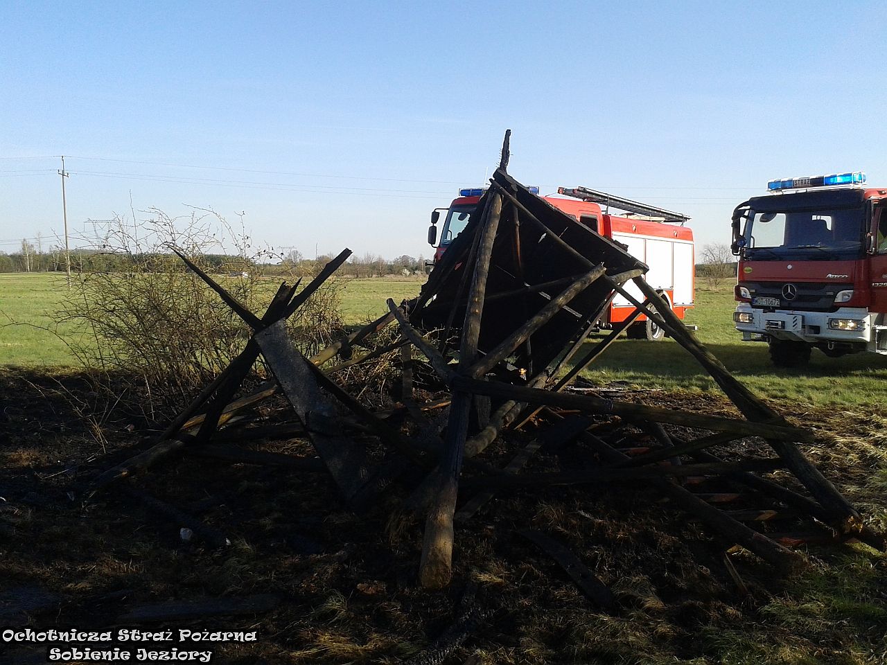23 kwietnia, o godzinie 16:47 w drodze do Warszawic, dyspozytor przekazał nam zgłoszenie o pożarze ambony w miejscowości Warszówka. Niezwłocznie udaliśmy sie na miejsce akcji. Spaleniu uległa całość konstrukcji. Po ugaszeniu płomieni, ambona została położona na polu i dogaszona. W działaniach brały udział: